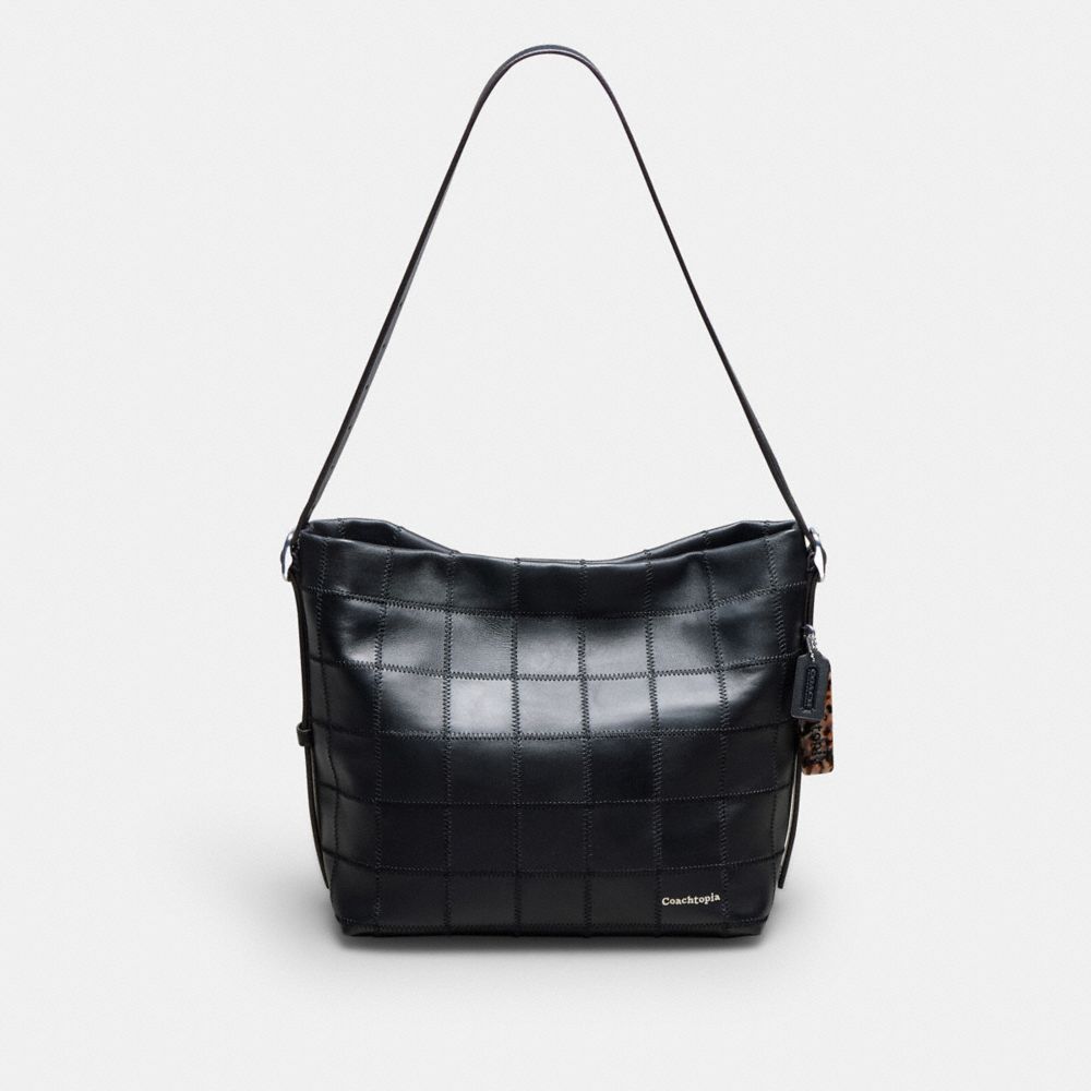Perfektes Patchwork: Diese Tasche ist ein raffiniertes Upcycling-Produkt aus Lederresten, die nach dem Zuschneiden einer Coach Tabby Tasche von einer Lederhaut übrig bleiben. Ganz im Stil einer echten Hobo verfügt sie über ein geräumiges Inneres (groß genug für einen Laptop), eine lässige Silhouette, einen Magnetverschluss, um Ihre wichtigsten Dinge sicher zu verwahren, sowie einen verstellbaren Riemen, womit sie sowohl als Schulter- als auch als Umhängetasche getragen werden kann.