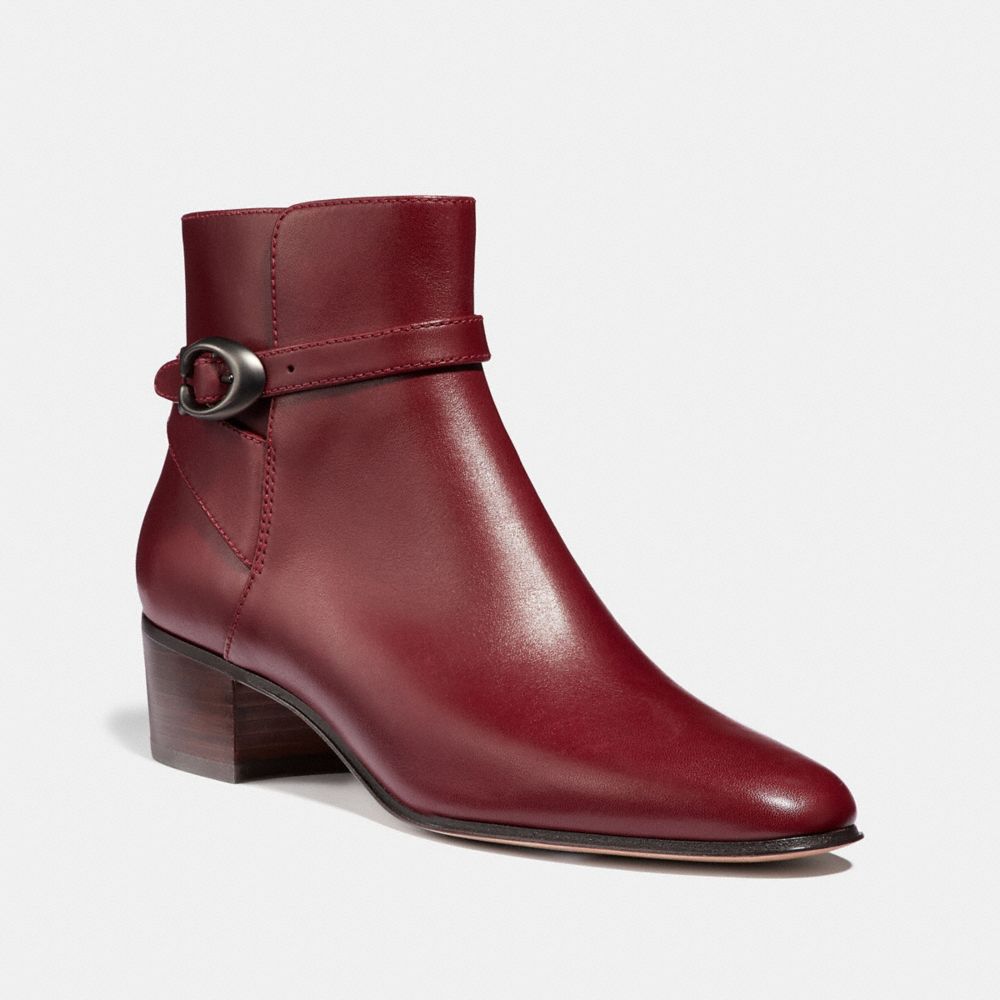 Crafted of smooth leather, the Chrystie bootie features a low block heel perfect for all-day wear. It’s finished with a polished Signature buckle.