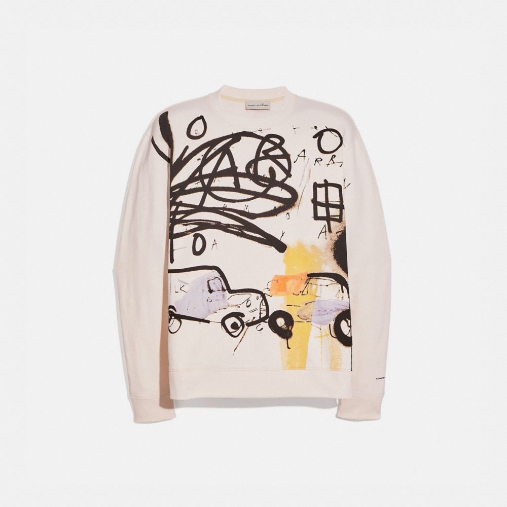 Coach feiert und ehrt den bekannten New Yorker Künstler Jean-Michel Basquiat mit einer besonderen Kollektion, die Elemente seiner revolutionären Kunstwerke zum Leben erweckt. Dieses Sweatshirt mit Rundhalsausschnitt und klassischer Passform aus Baumwolle ist mit einer weichen Naht abgeschlossen und zeigt auffällige Motive aus den rebellischen Kunstwerken des ikonischen Künstlers.