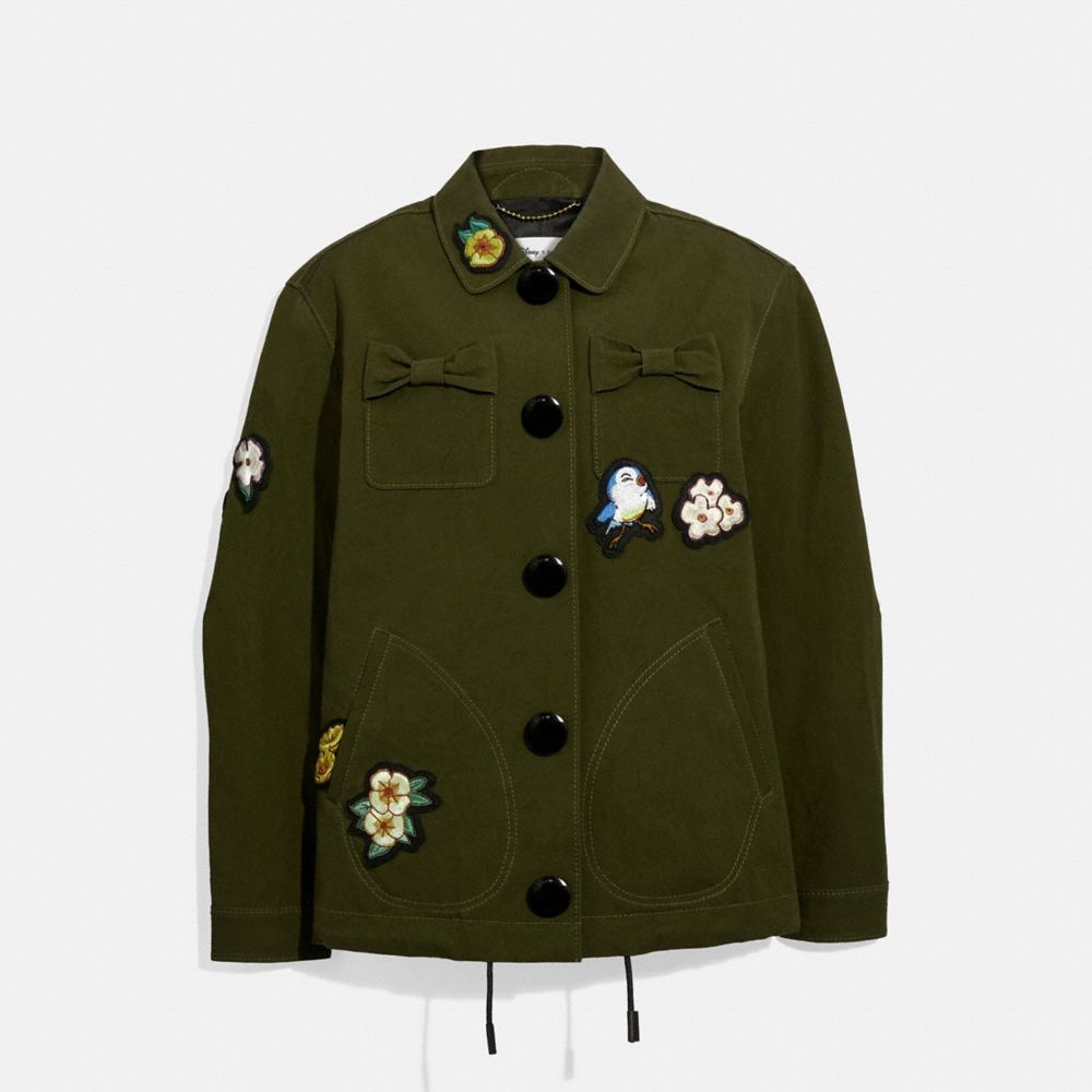 Es war einmal, in einem weit entfernten Land, da erfanden Coach und Disney eine neue Art, klassische Märchen zu interpretieren. Diese Coach Jacke in Sonderedition ist mit Schleifen und besonders femininen Aufnähern aus Schneewittchen und die Sieben Zwerge verziert. Das Modell besteht aus leichter Baumwolle und hat auf dem Rücken den vergifteten Apfel, der Schneewittchen in ihren Zauberschlaf verfallen lässt.