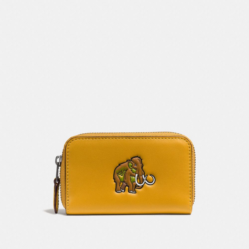 Dieser fröhliche Münzbeutel besteht aus Coach superweichem Leder und ist mit einem der verspielten prähistorischen Coach Tiere verziert. Zwei Fächer und ein Einschubfach halten alles Wichtige in Ordnung.