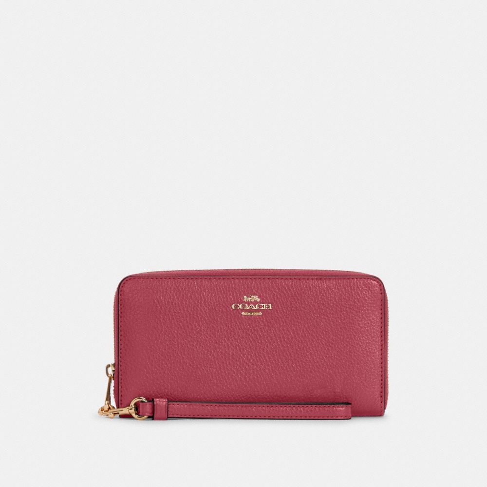 Wenn Sie eine besonders geräumige Geldbörse suchen, greifen Sie zu unserem langen Portemonnaie mit Rundumreißverschluss aus edlem, strukturiertem Leder. Mit einem abnehmbaren Handgelenkriemen und einer innenliegenden Münztasche ist es das ultimative Portemonnaie für unterwegs. Das praktische Design verfügt über 12 Kreditkartenfächer und durchgehende Geldscheinfächer und bietet sogar Platz für jedes beliebige iPhone oder Samsung-Galaxy-Handy. Mit diesem praktischen Lieblingsstück bleiben all Ihre Dinge geordnet und sicher.