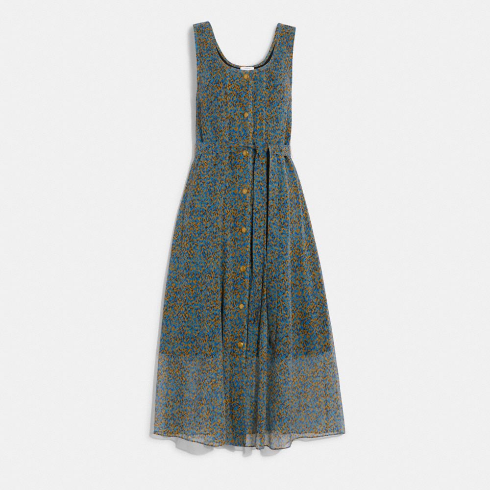 Schlüpfen Sie in dieses luftige Seidenkleid und genießen Sie seinen Tragekomfort. Mit einem malerischen Punkte-Print versehen, der von der ersten Chefdesignerin von Coach, Bonnie Cashin, inspiriert wurde, verfügt dieses Kleid über einen unifarbenen Unterrock, ein Bindeband an der Taille und eine einfache A-Linien-Silhouette.