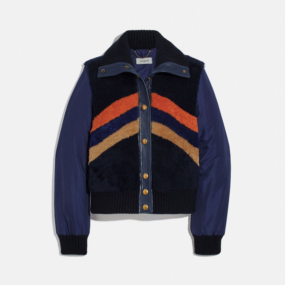 56% Lammfell, 42% Ribbon, 1% Nappa, 1% Nylon Futter: 100 % Polyester Druckknopfleiste Druckknopftaschen Länge: 53,3 cm Spezielle Lederreinigung Das Model ist 178 cm groß, hat einen Brustumfang von 79 cm, einen Taillenumfang von 61 cm, einen Hüftumfang von 89 cm und trägt Größe 2.Style No. 88990